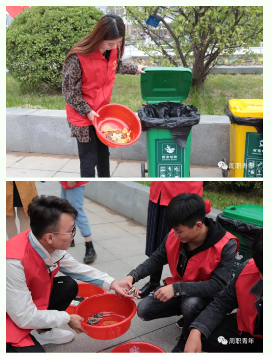 在李雨晴老师的带领指导下,17名志愿者在校园里对垃圾做出了具体的分类。
