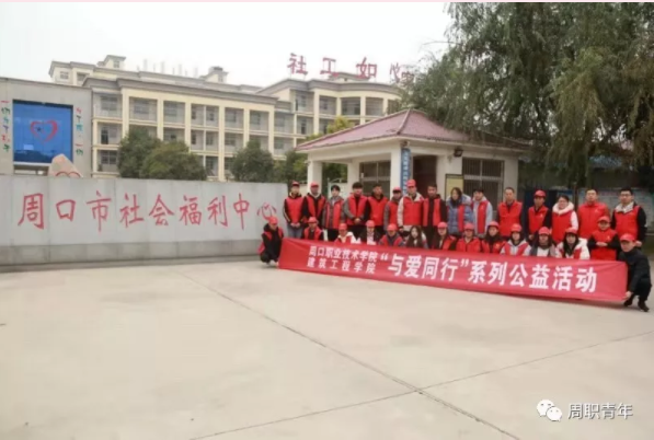 11月30日上午,建筑工程学院院长薛洪、副院长王伟、学管办主任李易昕及部分学院党员老师带领30余名大学生志愿者,来到周口市社会福利中心,开展了 “与爱同行”系列公益活动,在寒风中为周口市社会福利中心的儿童送去一份温暖与关爱。