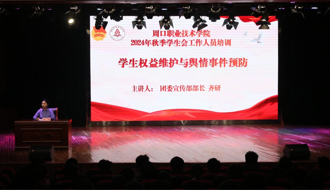 团委宣传部部长齐研在学生权益维护与舆情预防方面,明确权益范畴涵盖学习、生活、心理等,讲解侵权案例与申诉、法律等维权途径。重点强调舆情预防,分析其特点规律,提出建立监测机制,教学生干部捕捉舆情苗头防不实信息扩散,以实际案例模拟让参会者掌握应对话术,提升学校权益维护与舆情应对能力,保障校园和谐稳定。