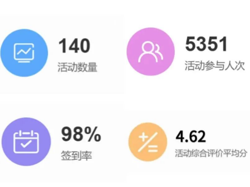 本周聚焦: 签到率 活动数量 活动参与人次 综合评价评分 活动分布: 活动分类分布 院系分布 活动回顾:“模拟就业 职引未来”大学生求职技能提升活动“AI赋能·智启未来”大学生AI数字工匠培育计划传承雷锋精神,弘扬榜样力量”第二课堂系列公益讲座活动