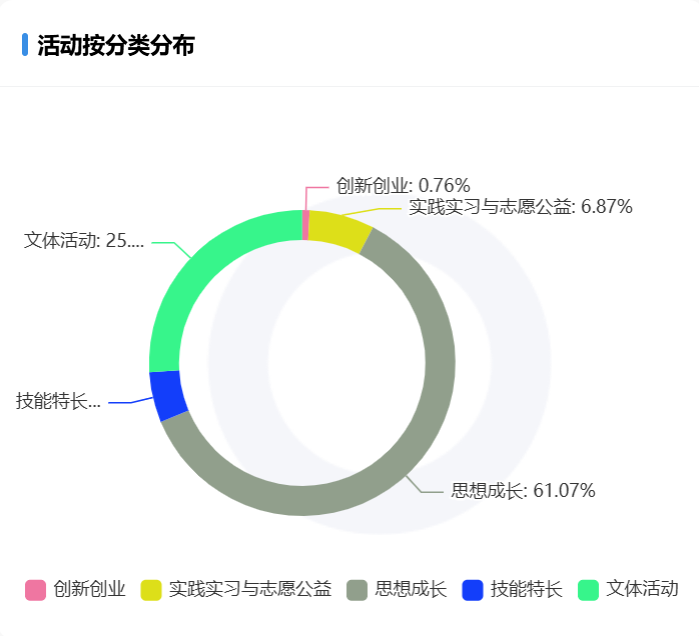 活动主要以思想成长类为首,其频率高达61.07%,其次是文体活动,实践实习与志愿公益也紧跟其后。