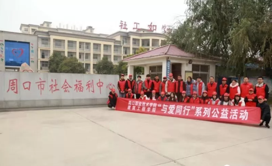11月30日上午,建筑工程学院院长薛洪、副院长王伟、学管办主任李易昕及部分学院党员老师带领30余名大学生志愿者,来到周口市社会福利中心,开展了 “与爱同行”系列公益活动,在寒风中为周口市社会福利中心的儿童送去一份温暖与关爱。