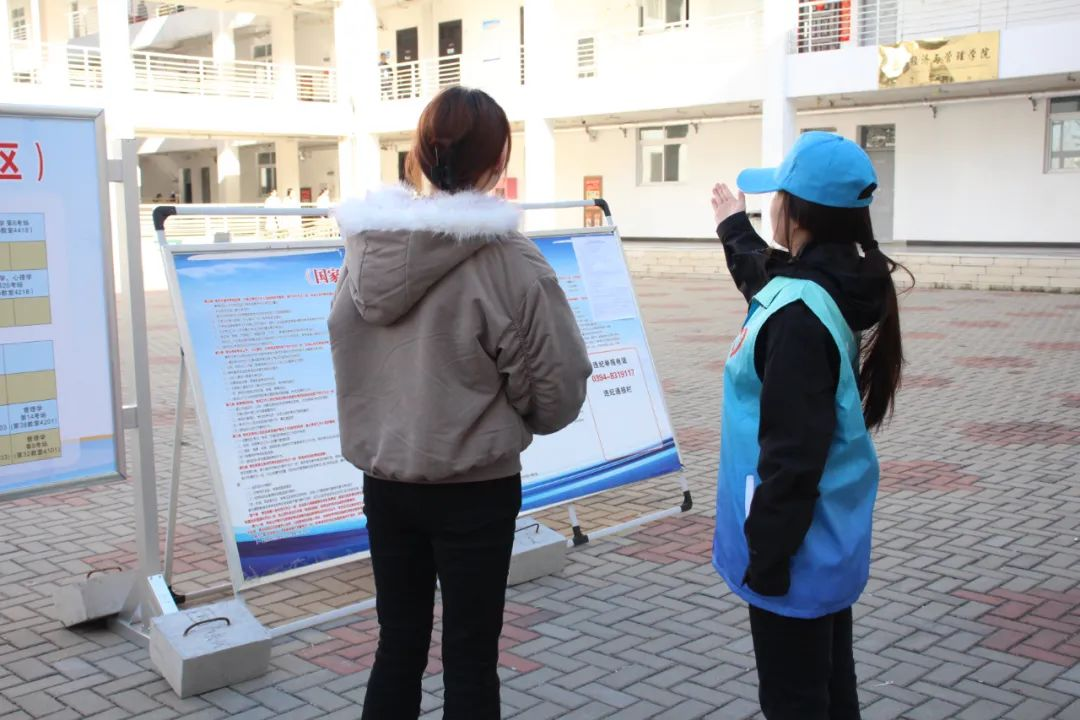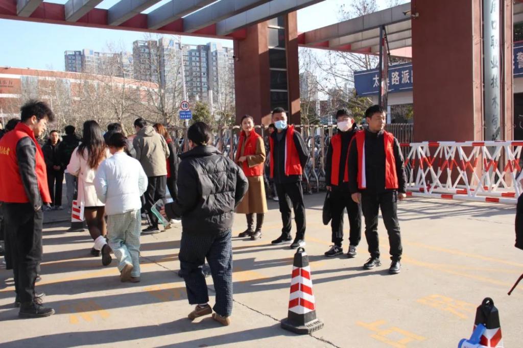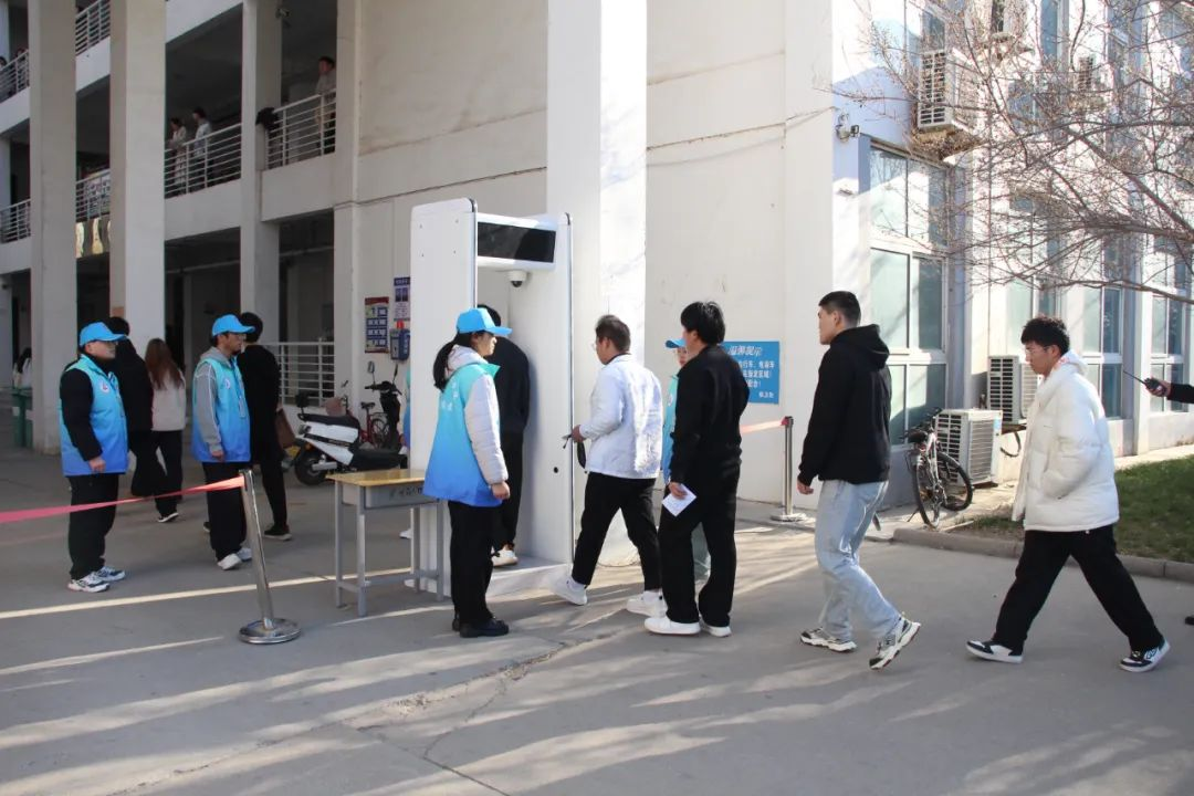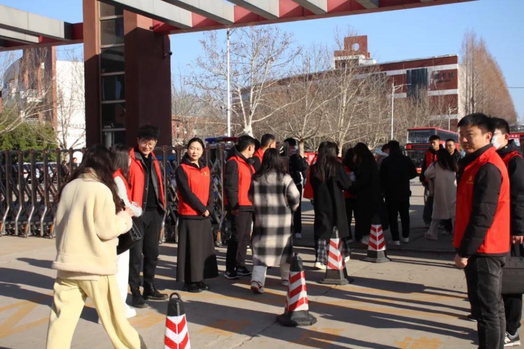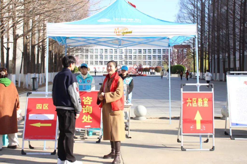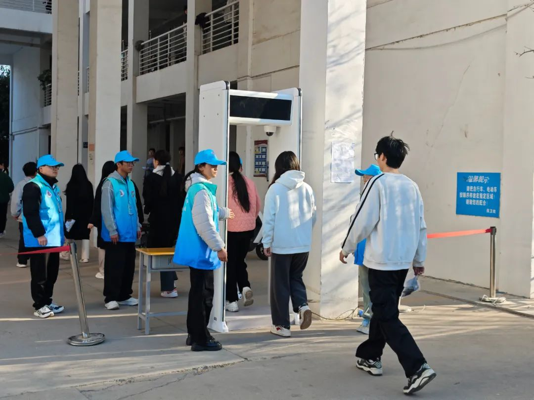 考试当天,天刚破晓,志愿者们就已早早奔赴校区的各个角落,全方位服务考生。在考场门口,他们面带微笑,耐心引导考生有序入场,用温和的话语缓解考生的紧张情绪;考场内,他们协助监考老师,认真维护考场秩序,专注而尽责;考场周边,他们来回巡逻,时刻留意异常情况,全力确保考试环境的安全与纪律。