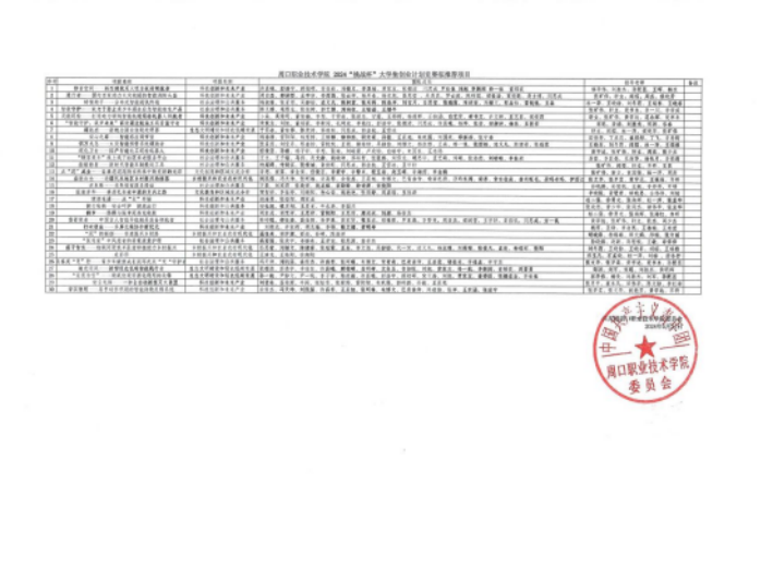 根据共青团河南省委《关于举办2024年“挑战杯”河南省大学生创业计划竞赛的预通知》文件相关要求,我校组织开展了2024年“挑战杯”河南省大学生创业计划竞赛,校团委牵头成立了项目评审工作组并召开专题会议进行动员部署,经个人申报、学院推荐、校级评审等环节,共评选出30件作品参加省级复赛,现将拟推荐参赛项目公示如下(排名不分先后):