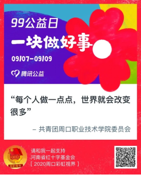 为响应河南省青少年发展基金会号召,周口市希望工程在腾讯公益平台发起以下2个公益募捐项目,为困境青少年汇聚爱心,传递温暖。在此,我们呼吁社会各界、爱心组织、学校和广大青少年踊跃捐款,与我们一同参与“99公益日活动,为实现人人公益贡献一份力量!