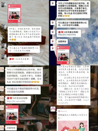 志愿者们积极响应,各班通过班级群和朋友圈进行宣传,为女童奉献一份自己的爱心。