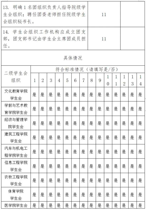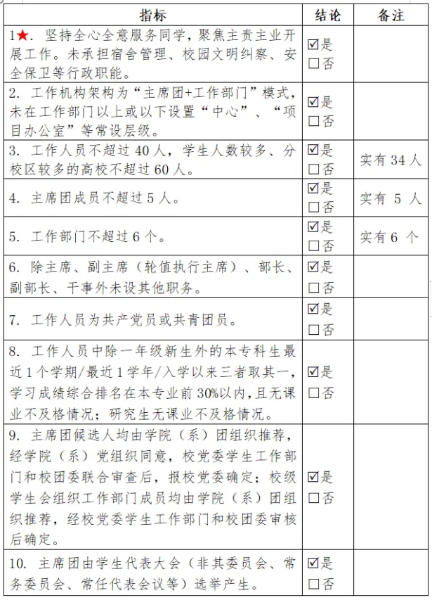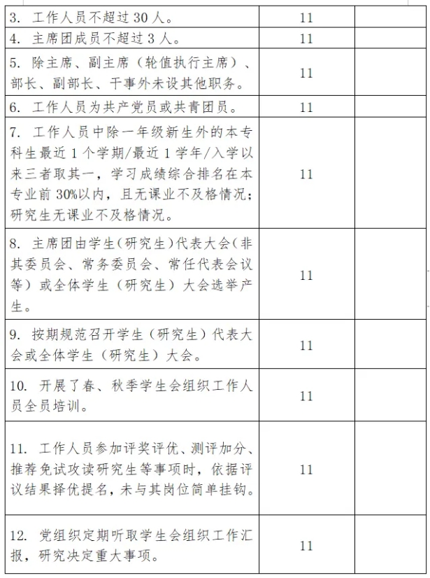 (二)二级学生会组织(含二级院系、书院、分校区等学生会、研究生会)改革自评表