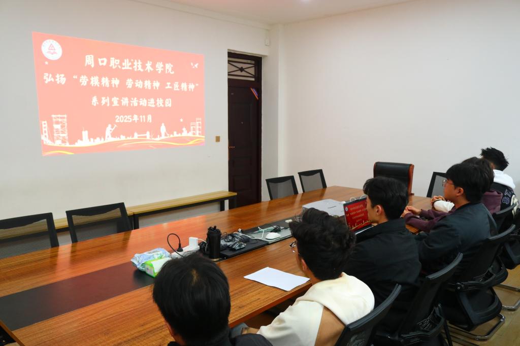 本次活动采用线下宣讲以及线上直播模式,同学们利用空余时间参加宣讲活动以及利用晚自习的时间在教室里集中观看直播。八位知名劳动模范和行业工匠,通过直播平台与全校学子“隔空相见”。他们从生产一线、科研阵地、服务岗位的亲身经历出发,在云端分享了各自立足本职、拼搏奉献的成长故事与心路历程。
