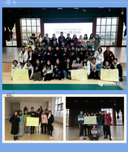 本次活动共持续将近两个小时,氛围热烈,活动结束后,同学们纷纷表示在今后的学习和工作中,会加强与同学的沟通交流,注重发挥个人特长,树立团体合作意识,增强集体荣誉感,提高心理素质。通过本次活动既提高了大学生心理健康水平,也有利于同学们更好地进行沟通和交流。