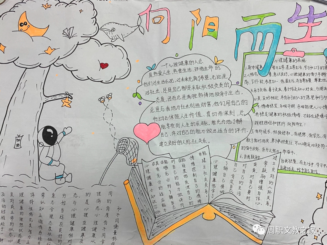 为进一步加强大学生心理健康教育工作,宣传普及心理健康知识,养成正确的心理健康观念,增强大学生的自我心理保健意识,培养学生健全的心理素质,丰富校园文化,构建和谐校园,特开展“同心抗疫,向阳而生”大学生心理健康手抄报活动。