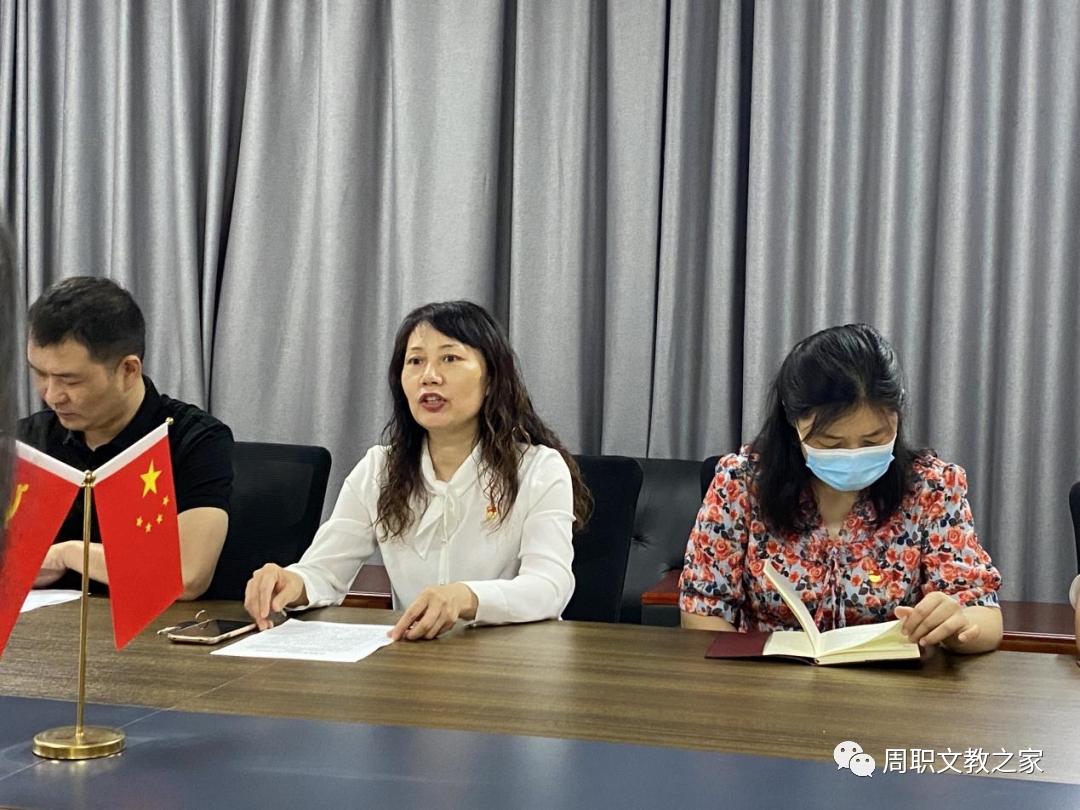 最后,文化教育学院党总支书记唐文杰发表讲话。她说:今天的会议,主要是研究51名同志的转正事项,形成了这51名同志按期转为中共正式党员的决议,这标志着51位同志政治生命有了新的开始,有了新的起点。我代表学院党总支向他们表示祝贺。唐文杰提三点期望:一,坚定理想,矢志不渝,努力奋斗。希望广大学生党员不仅在思想上入党,更要在行动上入党,要把个人的奋斗和国家的命运紧密联系在一起,在民族复兴征程上勇当先锋、倾情奉献。二,牢记“请党放心,强国有我”的铮铮誓言,勇做新时代的弄潮儿,自觉听从党和人民召唤,胸怀“国之大者”,担当使命任务。三,习近平总书记在纪念建团一百周年讲话中说到“人生万事须自为,跬步江山即寥廓”。追求进步是青年最宝贵的特质,要带头学习马克思主义理论,树立共产主义远大理想和中国特色社会主义共同理想,自觉践行社会主义核心价值观,大力弘扬爱国主义精神。