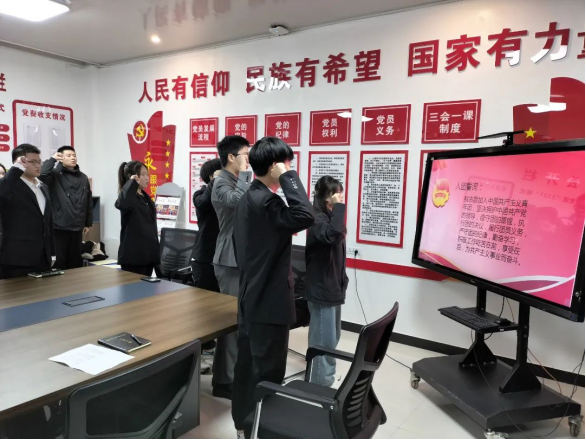 宣读完入团名单后,在王品的带领下,新团员们举起右拳、面向鲜艳的团旗庄严宣誓,一声声铿锵的誓言响彻整个会场,他们用铮铮誓言表达了成为一名共青团员的责任和担当,坚定了入团的初心和使命。