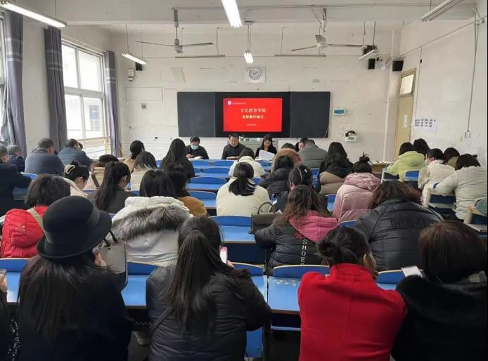 为传达落实近期学校相关会议精神,进一步推进学院各项工作,文化教育学院于11月29日下午,在4220教室召开了全体教师会议。参加此次会议的有文化教育学院党总支书记展贤东、院长史丽珍、教学副院长李炯、学管副院长于慧娟及学院全体教职工。会议由史丽珍院长主持。