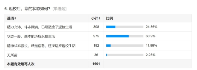 24.86%的同学已经适应了返校生活