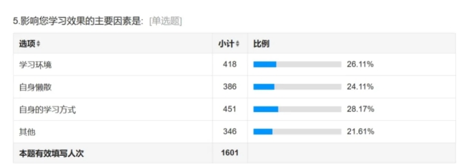 26.11%的同学认为是学习环境的影响