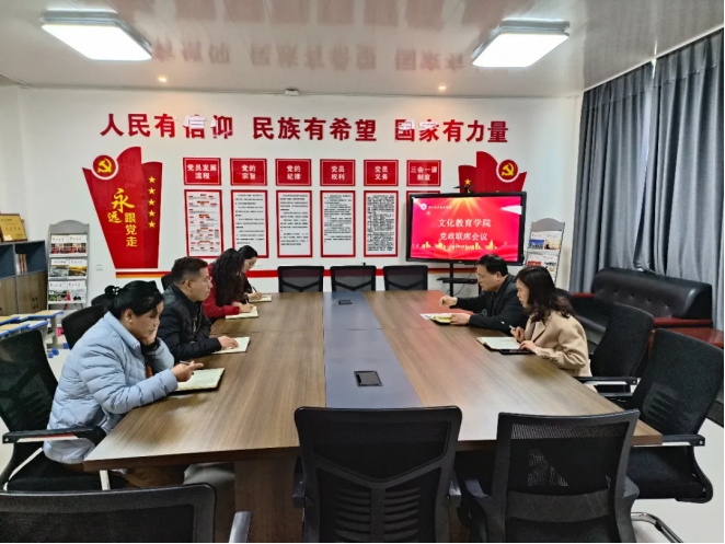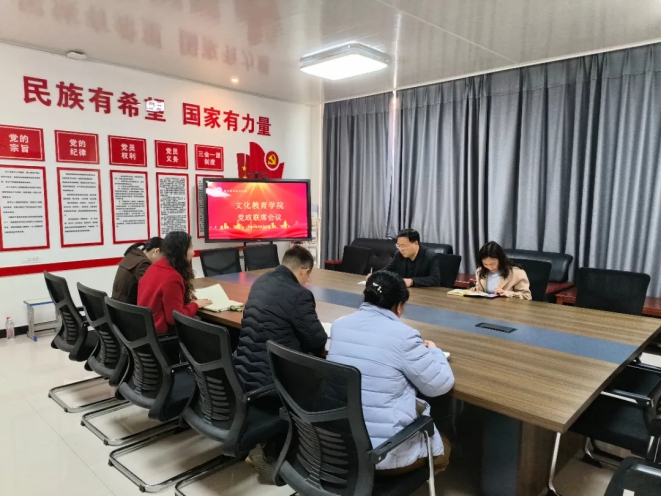3月12日下午,文化教育学院在党员活动室召开党政联席会议,全体院领导参加会议,会议由学院党总支书记展贤东主持。