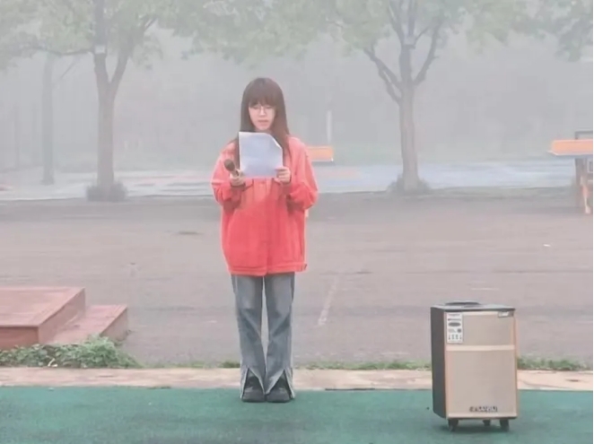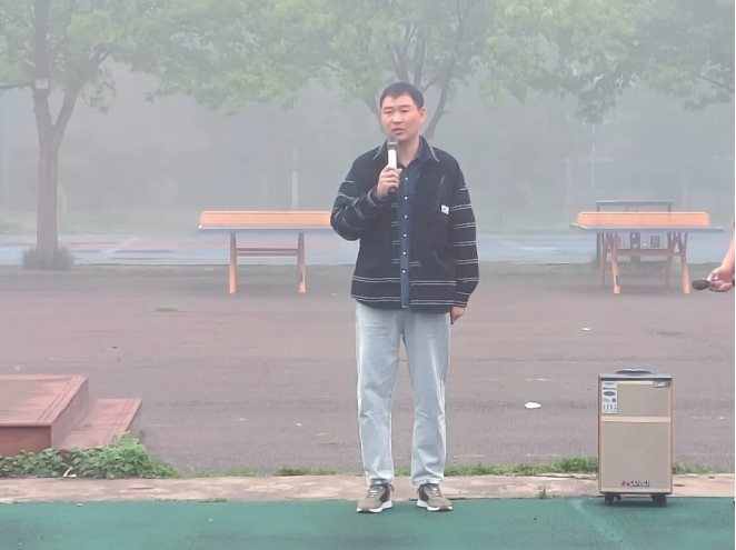 春日清晨,朝阳东升。此次会议由学管办主任普俊主持。6点40分,升旗仪式正式开始。