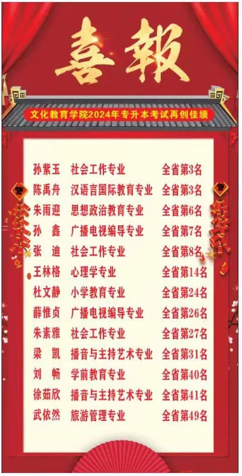 在此,我们向所有在专升本考试中取得优异成绩的学子们表示热烈的祝贺!