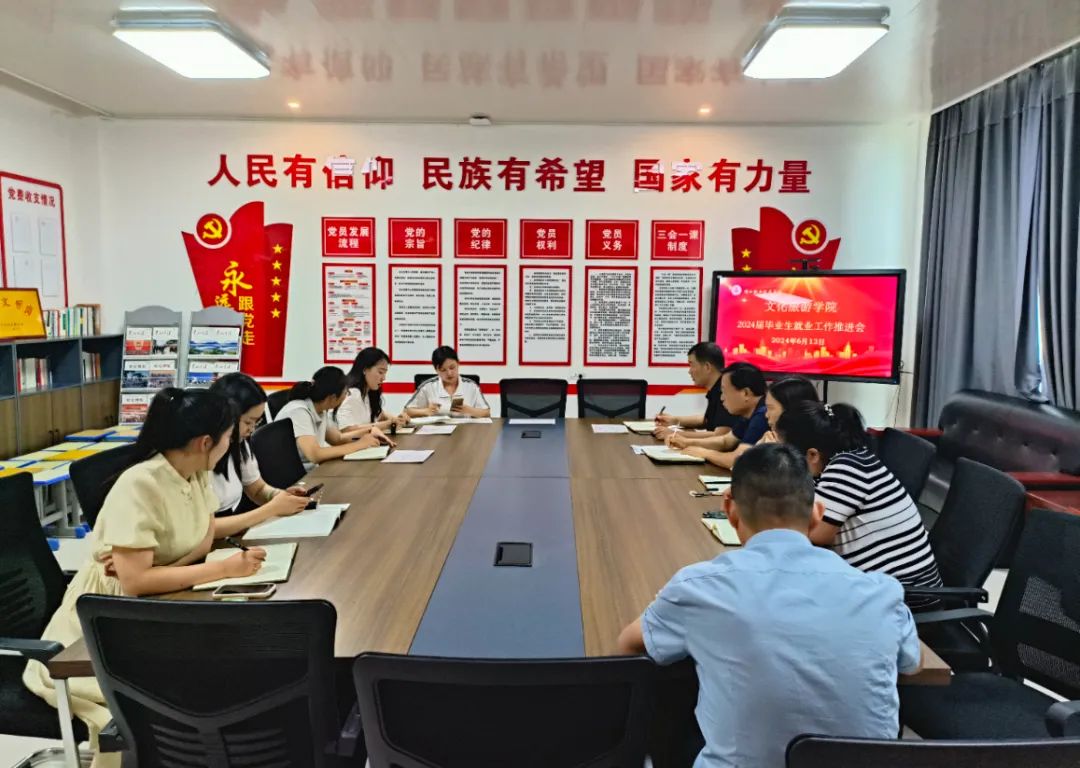 为进一步推进毕业生就业工作落细落实落地,实现毕业生更充分、更高质量就业,6月13日下午,文化旅游学院在五区党员活动室召开2024届毕业生就业工作推进会。学院党总支书记展贤东、院长史丽珍、副院长于慧娟、学管办主任普俊及毕业班全体辅导员参加会议。会议由展贤东主持。