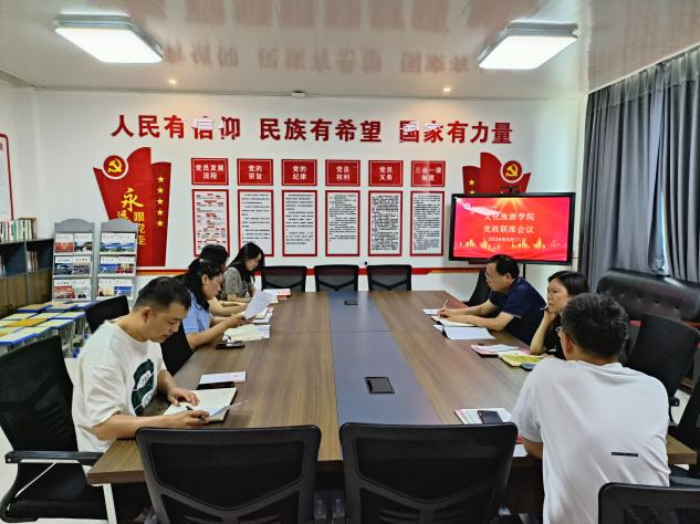 6月11日下午,文化旅游学院在五区党员活动室召开党纪学习教育集中学习研讨会。学院党总支书记展贤东、院长史丽珍、副院长于慧娟、李炯、综合办主任石永丽、教务办主任马淼、学管办主任普俊参加会议。会议由党总支书记展贤东主持。