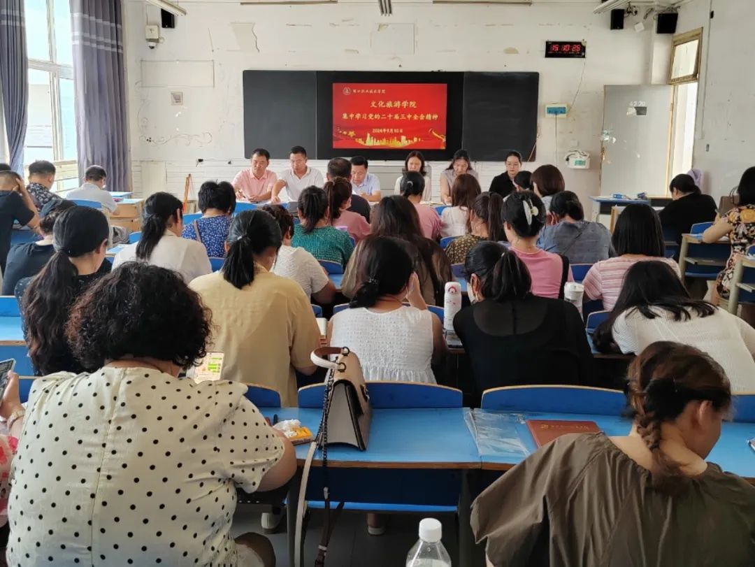 展贤东首先领学了党的二十届三中全会精神。他强调,学习贯彻党的二十届三中全会精神是当前和今后一个时期的重要政治任务。他指出,全体教职工要进一步学习领悟党的二十届三中全会精神:一是加强学习,凝聚共识。深入学习领会会议精神的核心要义和实践要求,切实把思想和行动统一到党中央的决策部署上来。通过组织专题学习、交流研讨等方式,注重凝聚共识,激发全体师生的积极性和创造力,共同为学院的持续发展贡献智慧和力量。二是强化担当,积极作为。面对新时代、新任务,全体党员教师要勇于实践创新,敢于担当作为。在工作中,要积极主动作为,勇于面对困难和挑战,不断探索新思路、新方法,努力在各自的岗位上创造出一流业绩。三是狠抓落实,联系实际。要把学习贯彻会议精神与推动学院工作紧密结合起来。四是加强宣传,营造氛围。通过多种渠道和方式,广泛宣传党的二十届三中全会精神,营造良好的舆论氛围。