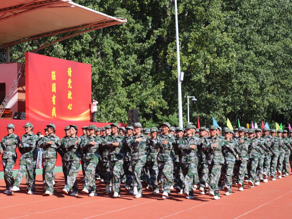 同学们喊着嘹亮的口号,迈着整齐的步伐依次经过主席台,接受领导和老师们的检阅。他们以昂扬的气势,饱满的精神,整齐的队列充分展示了2024级新生军训取得的丰硕成果。