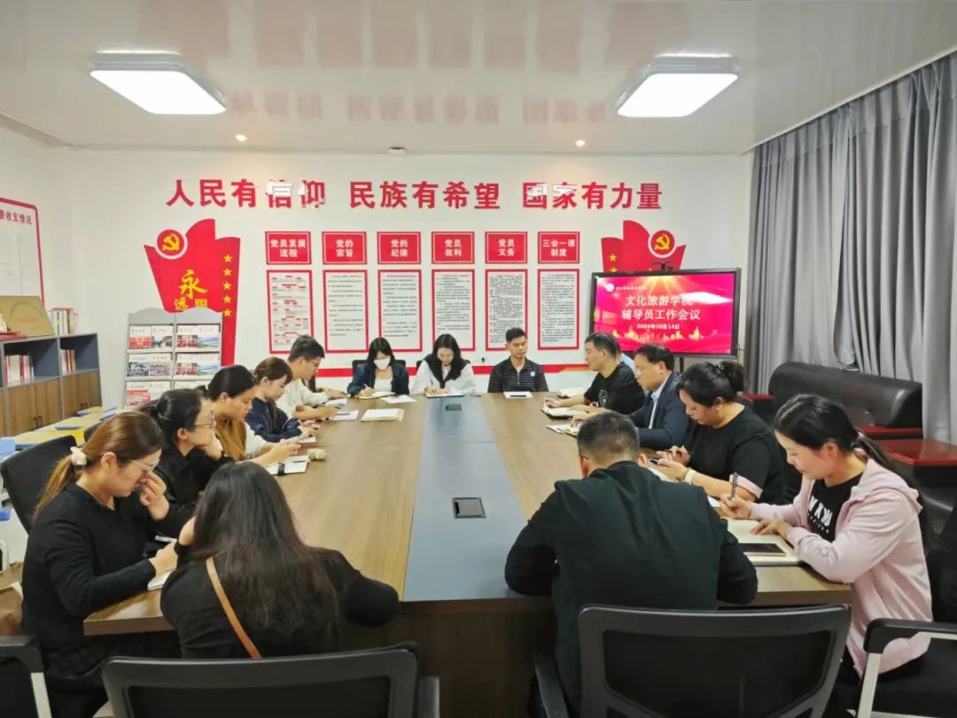 为进一步加强学生日常管理工作,提升学管工作成效,促进学院稳定发展,10月14日下午,文化旅游学院在五区党员活动室召开辅导员工作会议。学院党总支书记展贤东、副院长于慧娟、李炯,学管办主任普俊、综合办主任石永丽,23级、24级全体辅导员参加会议。会议由普俊主持。