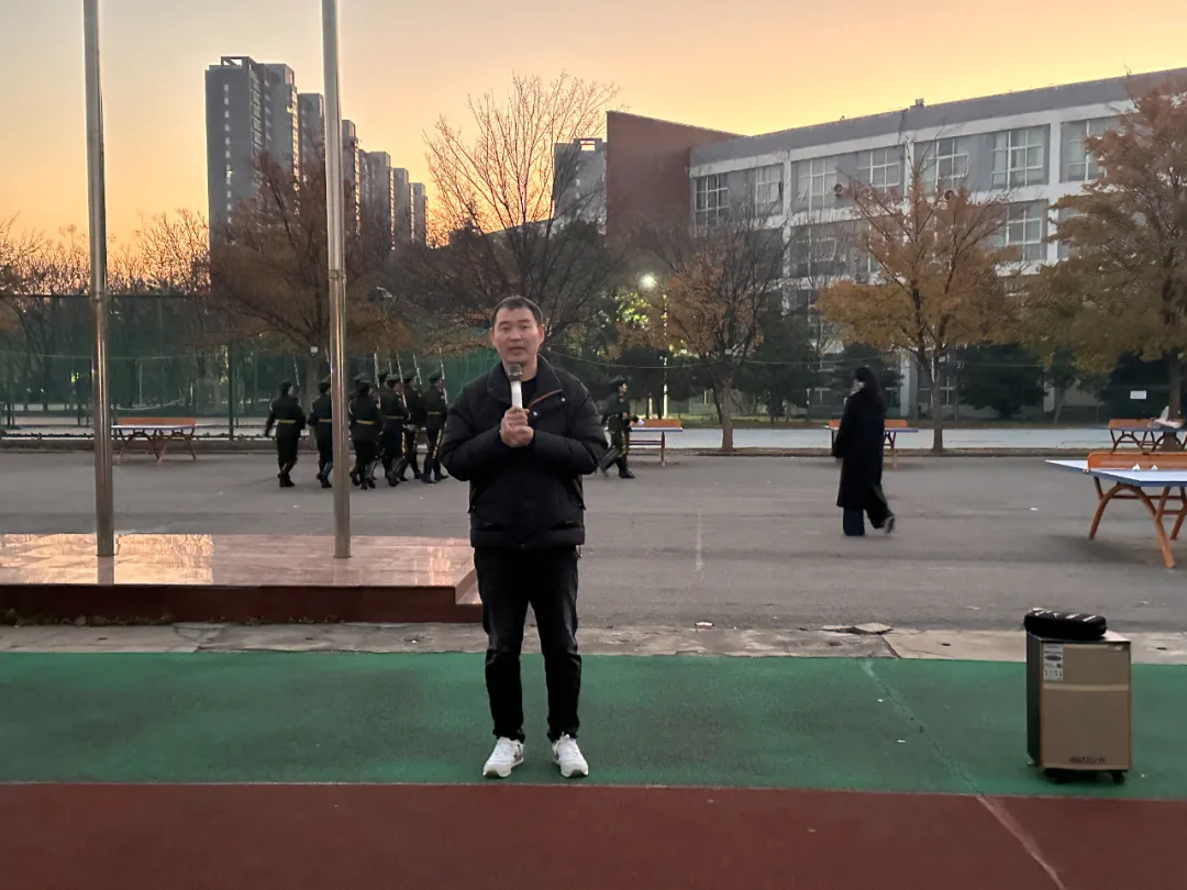 黎明初现,山海交相辉映。此次升国旗仪式由于学管办主任普俊主持。6点40分,升旗仪式正式开始。