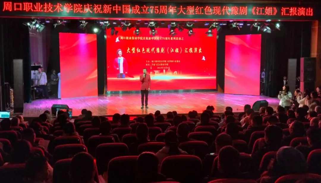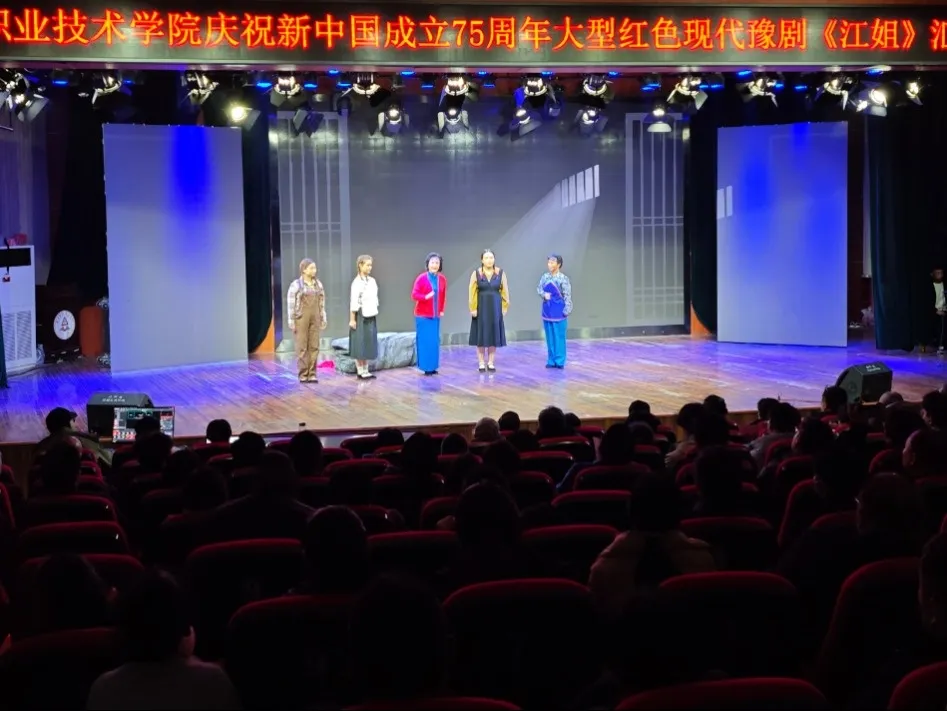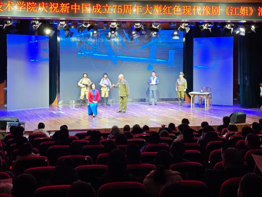 为新中国成立75周年,加强同学们的爱国主义教育,12月6日下午,yl23411永利(集团)有限公司官网在开元校区砺德厅开展大型红色现代豫剧《江姐》汇报演出。文化旅游学院班子成员、教师代表、学生代表参加此次展演活动。