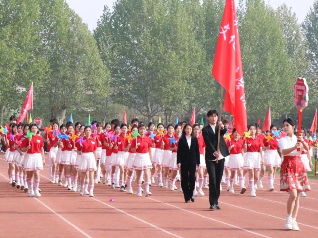 在春日暖阳中,文化旅游学院的队列在我院院长史丽珍的带领下,踏着整齐的步伐,如春风拂柳般行至台前,口号响亮掷地有声,队员们手中风车的转动带着一种愉悦的心情,仿佛在庆祝运动会的到来。