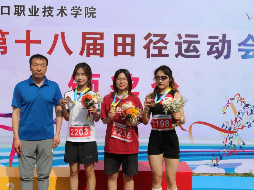 在第十八届田径运动会中,我院运动员以顽强拼搏的毅力,荣获多项荣誉。分别获得金牌4块、银牌7块、铜牌10块。其中,我院贺鑫悦、赵锦萱、陈晓椿、李旭东分别在女子100米、女子铅球、女子三级跳、男子1500米比赛中荣获金牌。此外,文化旅游学院还取得了男子团体总分第三名、团体总分第三名以及最佳风采奖的优异成绩。