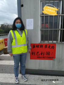 护理学院2018护理11班 陈丽萍她志愿参加了村里的疫情防控工作,做到凡是外地人员一律不让入村,凡是返乡人员一律先测量体温,再由家人陪同自行隔离,凡是出村人员,一律登记离村时间和目的地,同时宣传教育群众不要走亲访友、聚集聊天、走门串户。