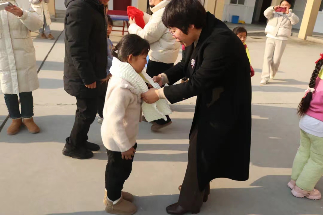 “一针一线凝温情,一条围巾暖童心。”活动现场,志愿者们为女孩围上柔软的围巾,为男孩戴上厚实的耳暖,并将装满梦想与希望的书包递到每个孩子手中。随着爱意传递,笑靥绽放,爱心汇聚,冬日便因爱而暖。