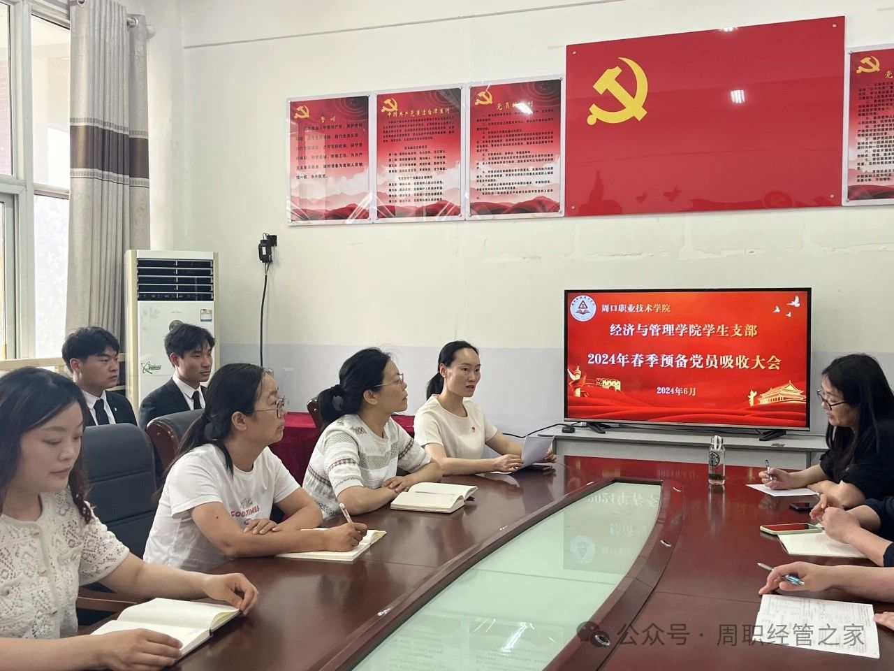 为进一步加强学生党支部建设,壮大学生党支部力量。2024年6月4日下午,经济与管理学院学生支部在第四会议室召开2024年春季预备党员吸收大会。学生党支部书记杨璐璐老师及各委员对接收发展对象宋怡馨、王怡硕等16名同志为预备党员事宜分别进行讨论和表决。会议由杨璐璐老师主持。