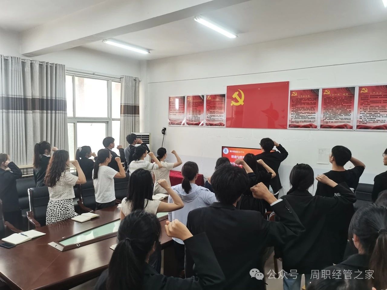 最后,杨璐璐老师向新同志表示了祝贺,并对几位同志寄予了殷切期望。并强调了入党宣誓是新党员加入党组织的必经程序,希望各位党员要始终牢记入党誓词,要时刻以中国共产党员的高标准严格要求自己。