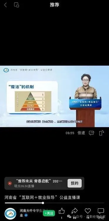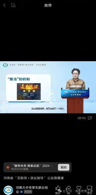 为引导大学生调整就业心态,树立积极的择业就业观,随着高校扩招,就业竞争日益激烈,大学生就业成为社会关注的热点问题。为了帮助大学生以正确的人生观、价值观、道德观和行为规范参与求职择业活动,增强社会适应能力,同时,帮助大学生树立正确的择业目标,掌握正确的求职技巧,解决求职过程中出现的问题,以及如何正确面对就业问题,“凝心聚力助就业,不负韶华早扬帆”用魔法打败魔法大学生就业心理调适,信息工程学院组织全体在校学生于6月11日晚上19:00观看河南省“互联网+就业指导”公益直播课。