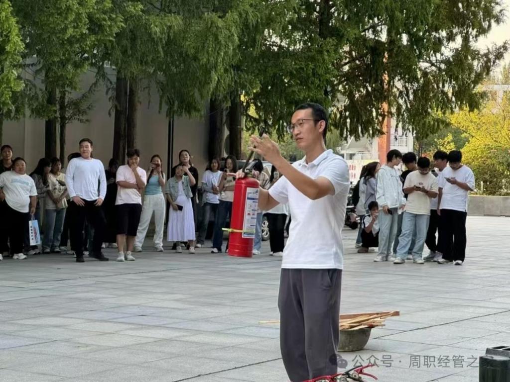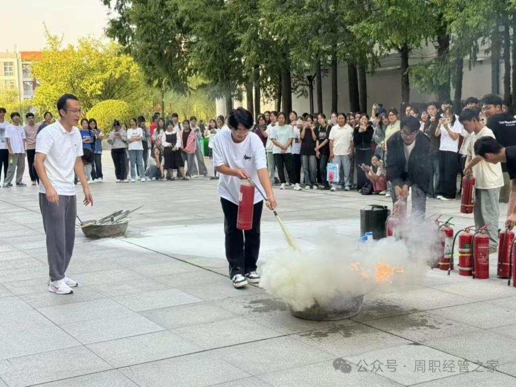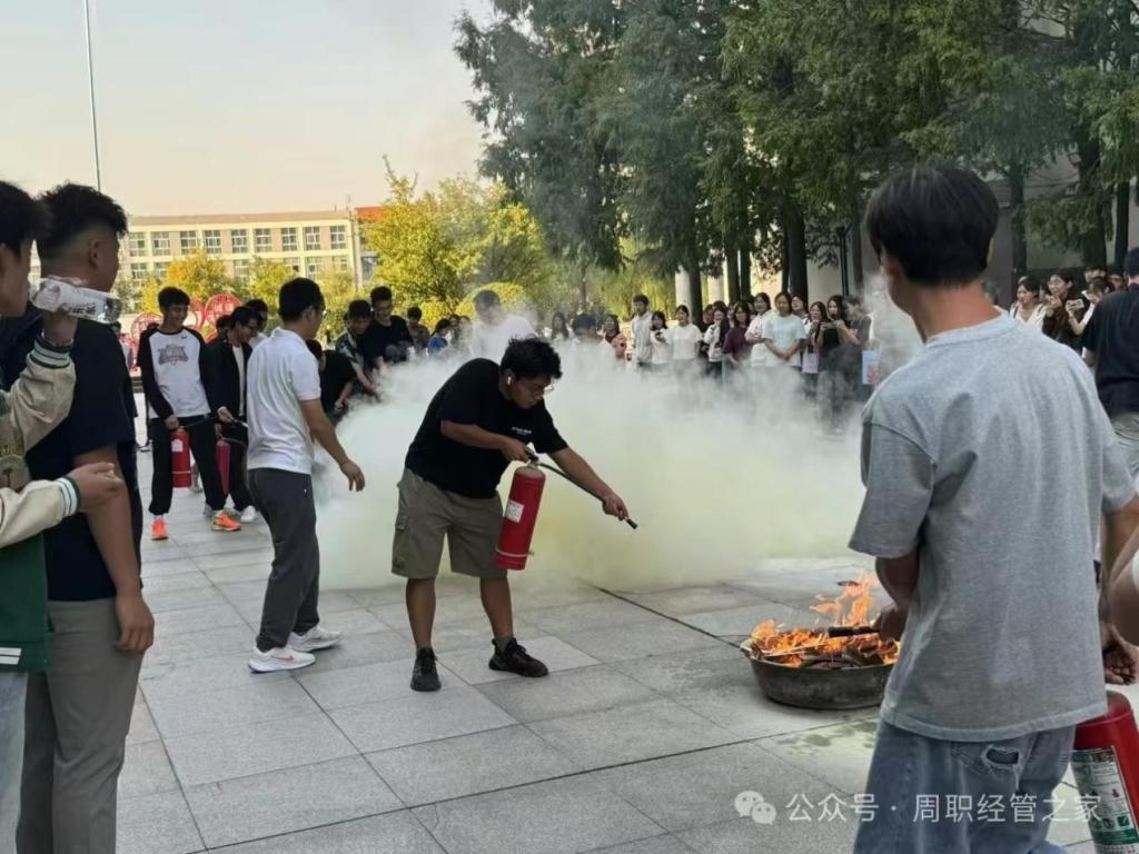 演练过程中,保卫处管理人员详细讲解了相关消防知识,让同学们对火灾的危害和防范有了更深刻的认识。保卫处现场演示了灭火器的使用方法,随后,又演示了消防栓的使用方法,快速接上水管并放水。整个过程高效且专业,让同学们大开眼界。随后,同学们踊跃参与灭火器的使用方法,同时增强了实际操作能力。