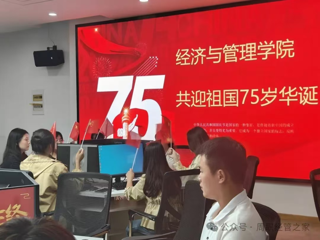 为了庆祝中华人民共和国成立75周年,唱响爱国主旋律,营造校园喜迎国庆的热烈气氛,弘扬学生的爱国主义精神、培养学生社会主义核心价值观。经济与管理学院于9月29日上午在物流实训室开展“光影颂祖国,国庆忆峥嵘”主题党课活动,23级入党积极分子学生代表积极参加。