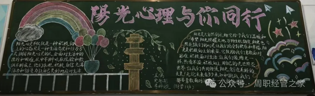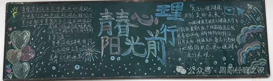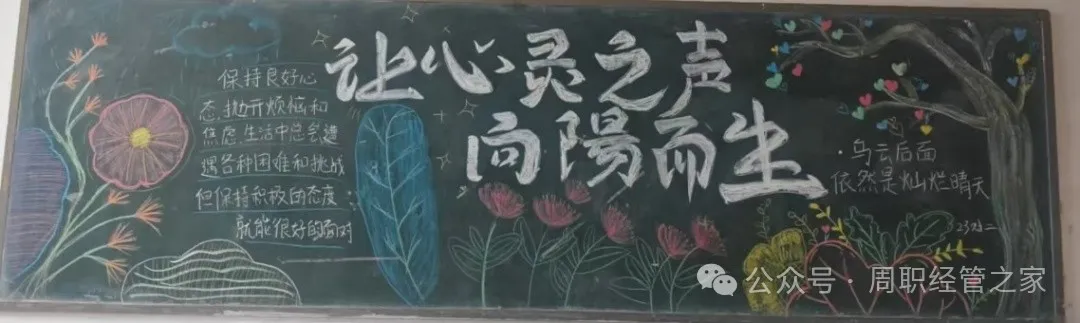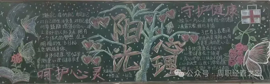 为进一步加强心理健康教育工作,推动广大学生对心理健康的重视和了解,营造健康和谐的校园氛围,促进学生的心理健康发展,我院开展以“青春心灵,沐光而行”为主题的黑板报活动。