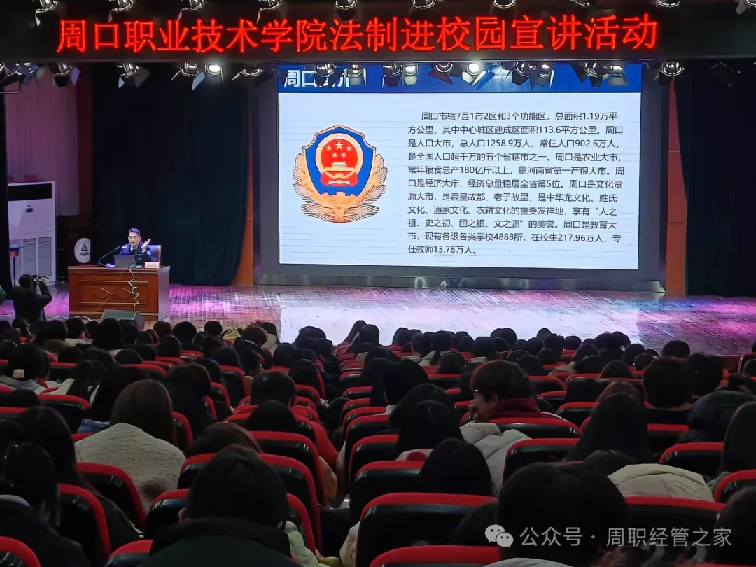 为深入推进校园法治建设,增强学生的法治观念和自我保护意识,yl23411永利(集团)有限公司官网于12月3日开展了一场以“法制进校园”为主题的宣讲讲座。此次讲座由公安局经济开发区分局代表人康警官进行法律知识的讲解与指导,经济与管理学院同学积极参加。