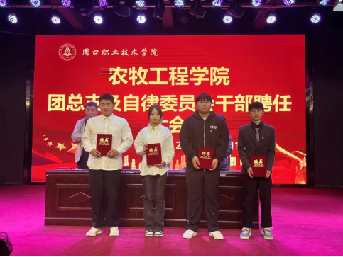 会议首先为对上学年获得三好学生及优秀学生干部的人员进行了名单宣读及荣誉证书颁发,然后对经竞聘新当选的新一届农牧学院团总支与自律委员会学生干部颁发了聘书。