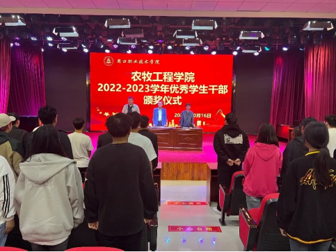 金秋启新程,笃行向未来。为进一步加强我院学生干部队伍建设,认真践行学生自我教育、自我管理、自我服务的理念,我院于2023年10月16日下午举行2022~2023学年优秀三好学生及优秀学生干部表彰会暨2023年~2024学年院团总支与自律委员会学生干部聘任会。出席本次会议的领导有:党总支书记王安、副院长王伟、学管办主任巩小凯。仪式由副院长王伟支持。