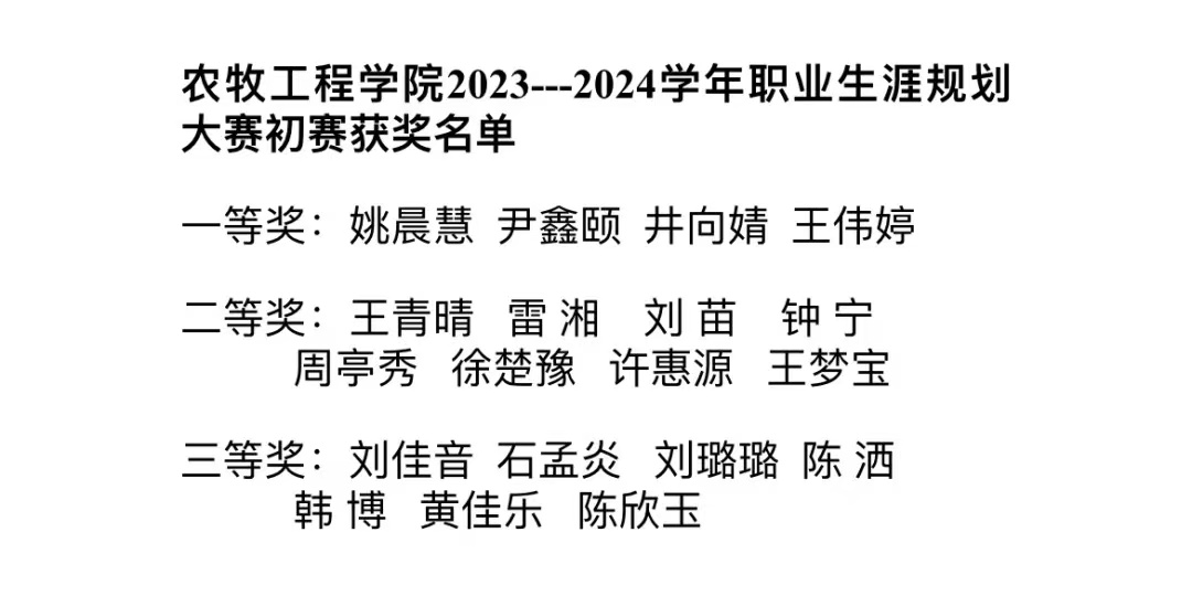 为了引导大学生树立正确的成才观、职业观和就业观,科学合理地规划学业与职业发展,不断提高就业能力,全面发展、成长成才,农牧工程学院于10月中旬开启了大学生职业生涯规划大赛,并由评委老师对选手进行打分,获奖名单如下: