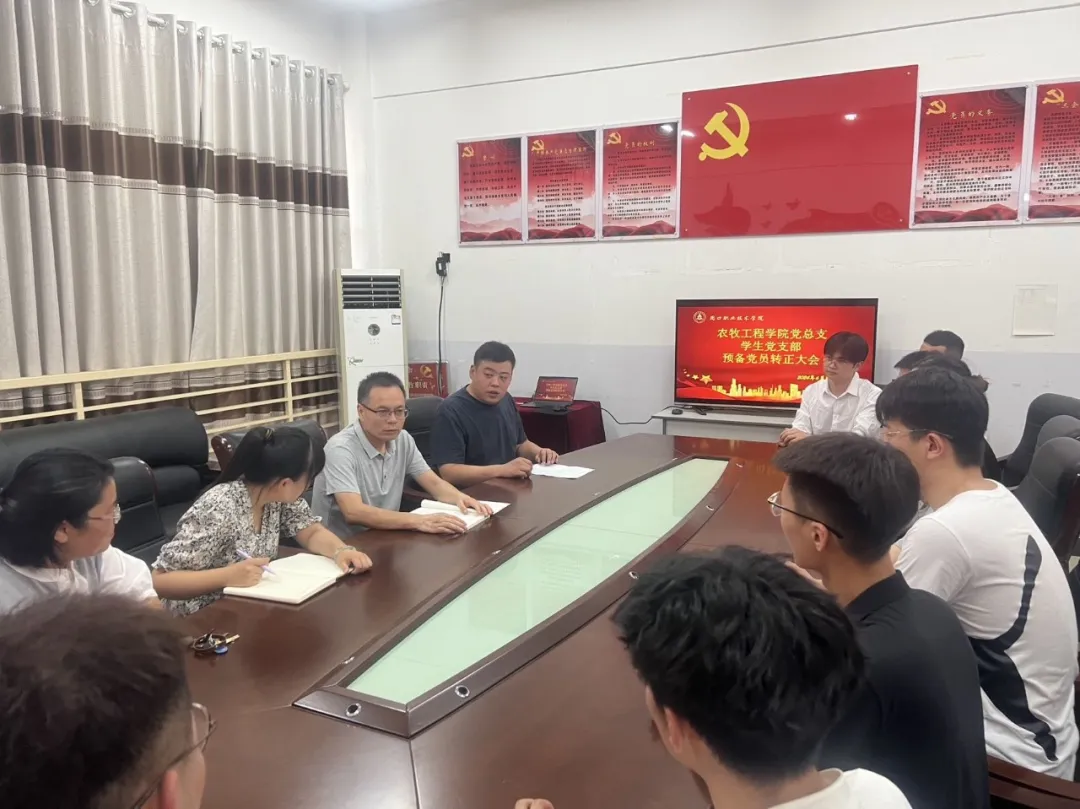 为进一步加强学生党员队伍建设,6月14日下午,农牧工程学院学生党支部在第三会议室举行预备党员转正大会。本次大会讨论杨立冬等10名预备党员转为正式党员。学院党支部书记王安、学生党支部书记巩小凯、综合办主任米文静等老师出席会议。