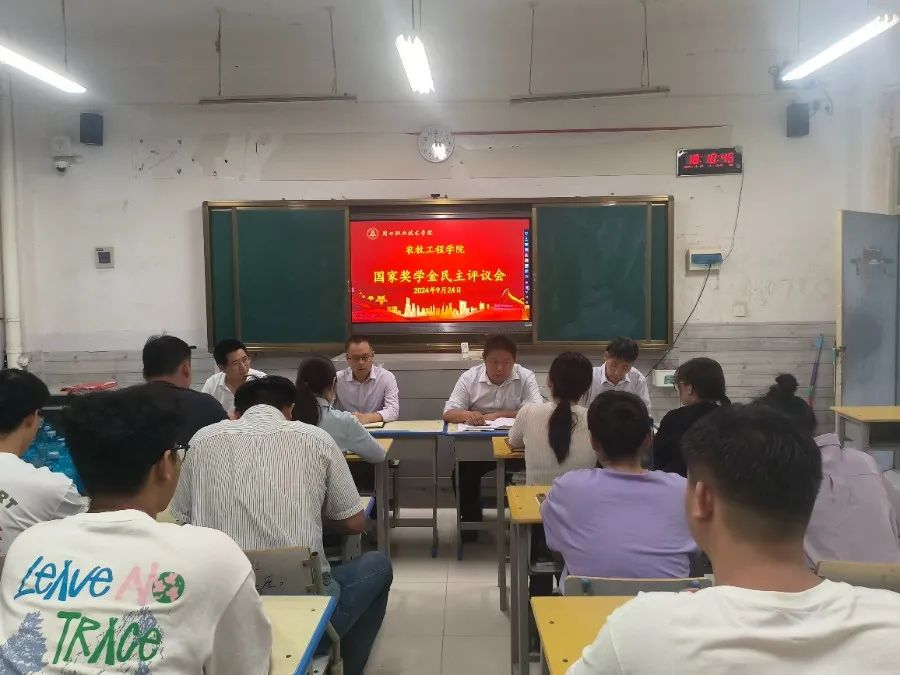 为全面落实立德树人的根本任务,充分发挥榜样的激励作用,展现我院优秀学子风采,鼓舞学生勤奋学习、积极进取。9月24日,农牧工程学院在4128教室召开国家奖学金民主评议会。会议由副院长王伟主持,党总支书记王安、院长宋建华、副院长朱平军、学管办主任巩小凯及各班辅导员出席会议。