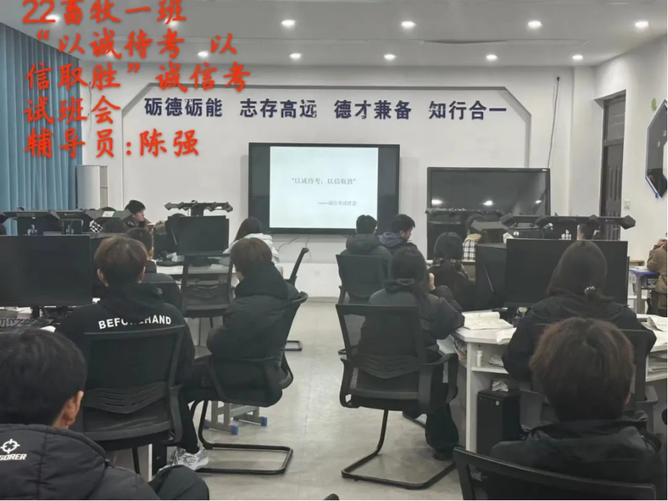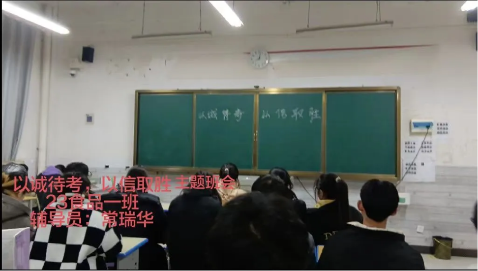 班会中,各班班长首先强调了诚信考试的重要性,班长表示:“诚信是大学生应有的道德品质。我们要以实际行动践行诚信,坚持公平竞争,坚定慎独自律,坚决对作弊等乱纪行为说不,维护考场公平秩序。”