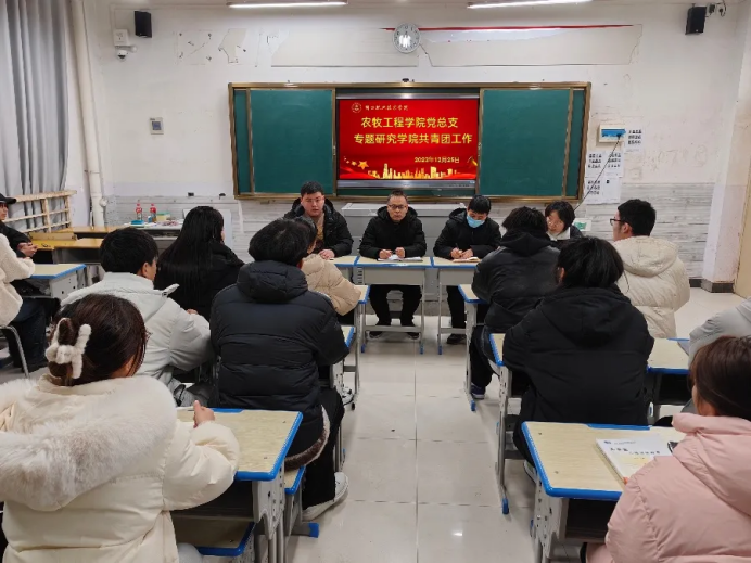 为贯彻落实高校立德树人根本任务,12月25日下午,农牧工程学院召开专题研究学院共青团工作,研究部署下一学年学院共青团主要工作。党总支书记王安、副院长王伟、学管办主任巩小凯、办公室主任位楠楠、团学干部及全院团支书参加本次会议。