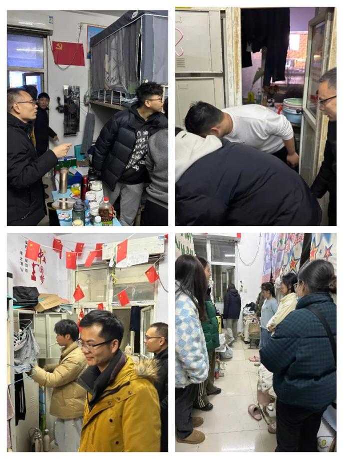 此次负责检查的老师们重点关注了宿舍内是否存在使用大功率及违规电器、私拉乱接电线等消防安全隐患。同时,他们还详细检查了宿舍内是否堆放过多杂物。在宿舍走访过程中,王安书记再三强调用电安全、财产安全的重要性,提醒同学们出门时要断电锁门,并妥善保管好自己的贵重物品,希望同学们能够合理安排在校的学习和生活,共同营造一个安全、和谐、温馨的宿舍环境。