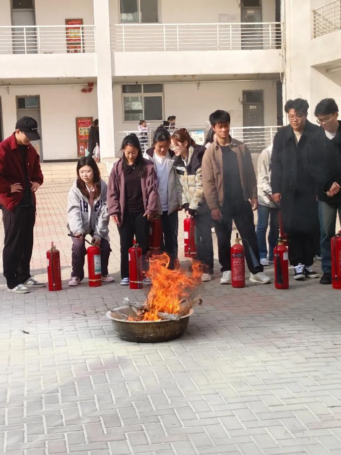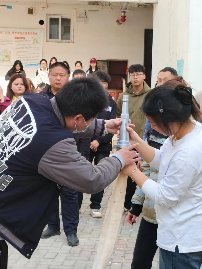 本次活动邀请消防专业人员进行现场讲解,分为“先培训示范、再实操演练”两个阶段进行。讲解人员结合日常工作、生活实际,详细讲解火灾预防、应急处理、火场自救逃生等注意事项,并“手把手”演示干粉灭火器“一拿、二拔、三喷”使用技巧,带领同学们切身体验了一场实战灭火。随后,对办公楼消火栓的使用,按照开箱门、按手报、拿水枪、拉水带、开阀门的步骤进行了现场讲解体验。让全体师生近距离感受火灾扑救过程,在实际参与中掌握灭火要领,提升自防自救能力。