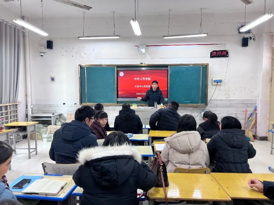 为深入学习贯彻党的教育方针政策,推动学院教育教学高质量发展, 12月25日下午,农牧工程学院支部书记在4128教室讲授专题党课,宣讲内容是以数字化开辟教育发展新赛道。